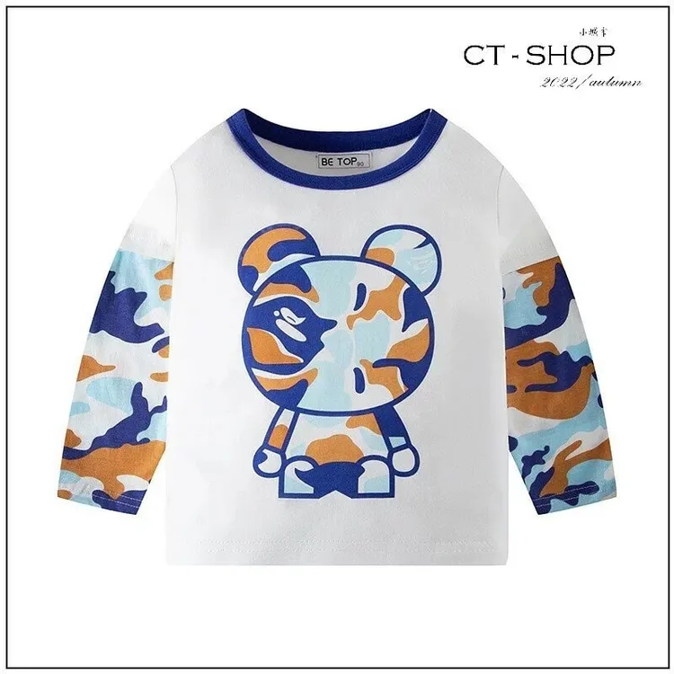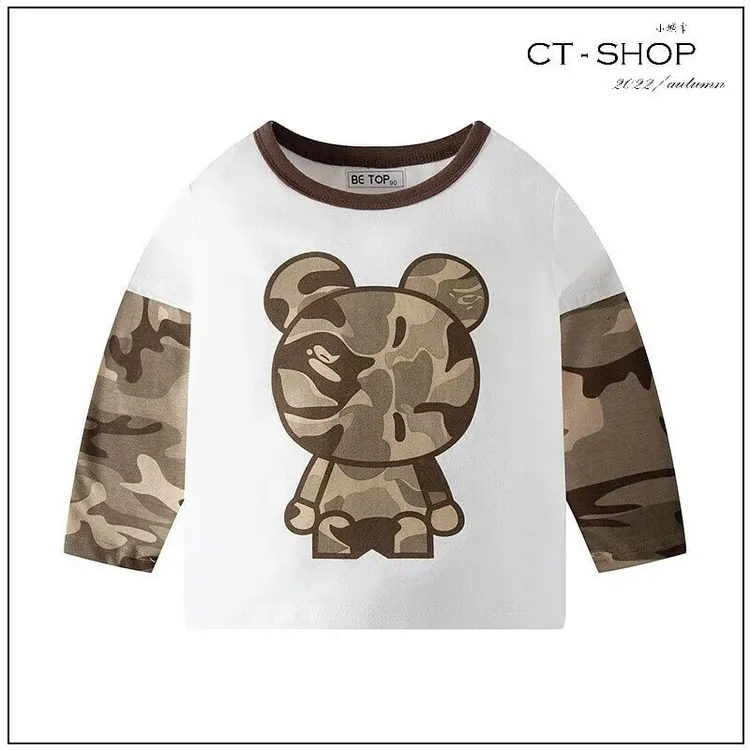 『MIXB』迷彩小熊圓領上衣-s