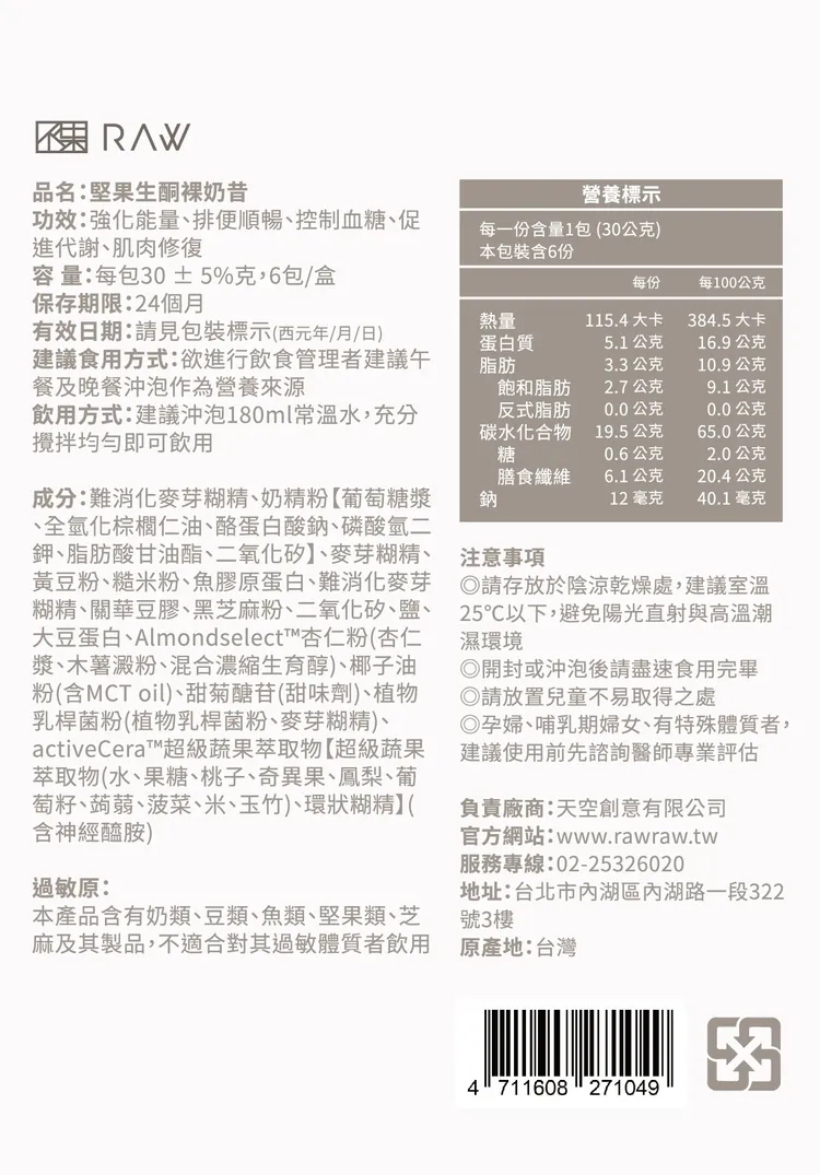 【品名】堅果生酮裸奶昔