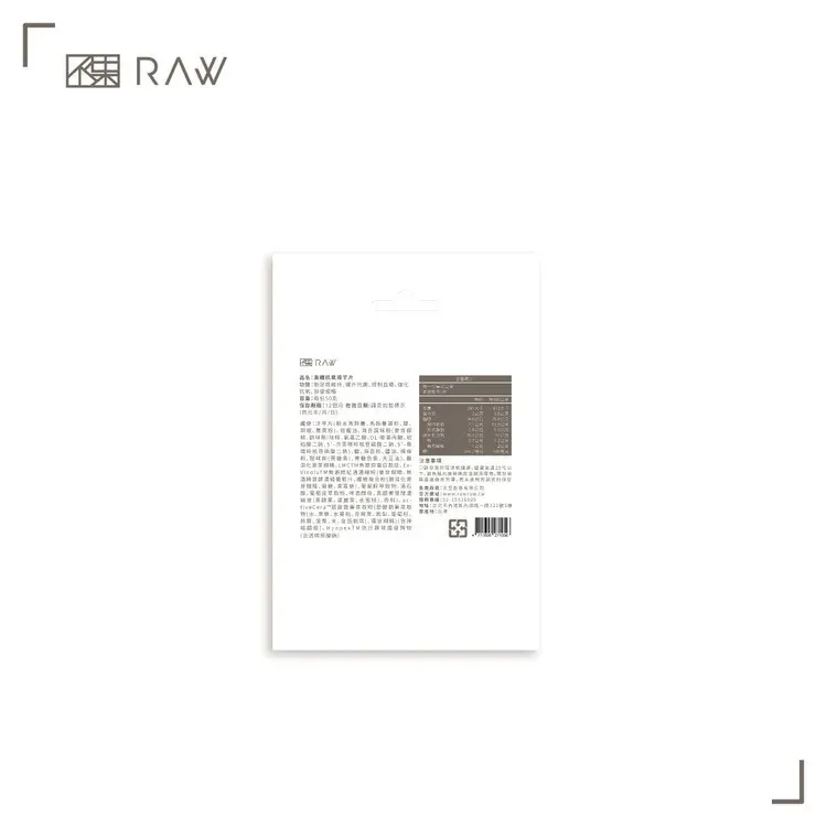【成分】洋芋片(脫水馬鈴薯、馬鈴薯澱粉、鹽、胡椒、薑黃粉)、棕櫚油、海苔調味粉(麥芽糊精、調味劑(味精、氨基乙酸、DL-胺基丙酸、琥珀酸二鈉、5’–次黃嘌呤核苷磷酸二鈉、5'–鳥嘌呤核苷磷酸二鈉)、鹽、海苔粉、醬油、辣椒粉、甜味劑(蔗糖素)、焦糖色素、大豆油)、難消化麥芽糊精、LMCTM魚膠原蛋白胜肽、ExVinolsTM無酒精紅酒濃縮粉(麥芽糊精、無酒精發酵濃縮葡萄汁、纖維複合粉(難消化麥芽糊精、菊糖、果寡糖)、葡萄籽萃取物、酒石酸、葡萄皮萃取物、啤酒酵母、黑醋栗發酵濃縮液(黑醋栗、諾麗果、水蜜桃)、香料)、activeCera™超級蔬果萃取物(發酵蔬果萃取物(水、果糖、水蜜桃、奇異果、鳳梨、葡萄籽、蒟蒻、菠菜、米、金頂側耳)、環狀糊精)(含神經醯胺)、HyapexTM流行鍊球菌發酵物(含透明質酸鈉)